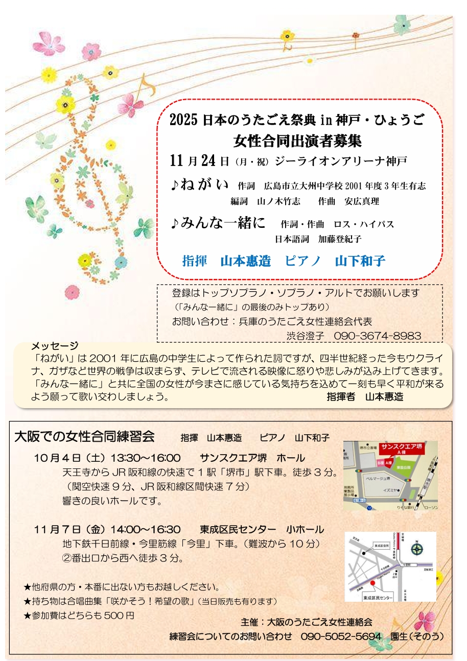●女性のうたごえを、心を込めて会場へ届けましょう!